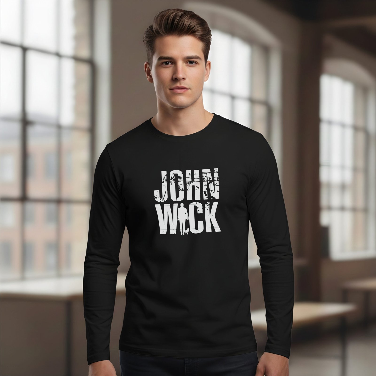 Unleash your inner legend with this black full sleeve t-shirt featuring a bold “John Wick” typography graphic. Inspired by the fearless spirit and unstoppable attitude of an iconic assassin, this design delivers a powerful, edgy look perfect for fans of action-packed style and modern streetwear.