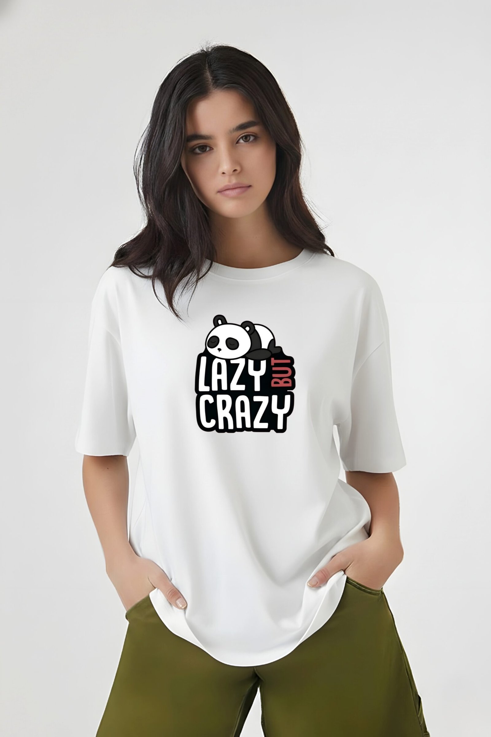 Channel your inner spirit animal with the “Lazy But Crazy” Panda T-shirt. This white oversized t-shirt features a playful illustration of a sleeping panda perched atop bold, stylized typography. It’s the perfect blend of cute and edgy for those days when you’re feeling low-energy but high-personality.